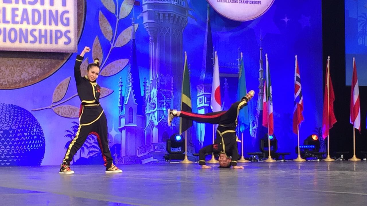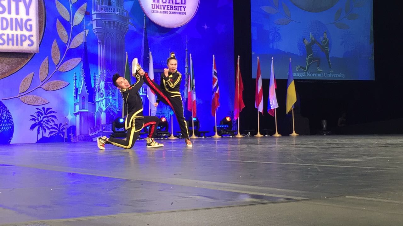 日前,接到从美国奥兰多市传来的喜讯——我校啦啦队在第34届世界大学生啦啦操锦标赛获得舞蹈啦啦操双人街舞项目中荣获冠军(参赛学生为苏钰、杨凯茵,教练员为区峻老师),这是我国大学生在该项目的国际高校顶级赛事中首次摘得世界冠军桂冠。