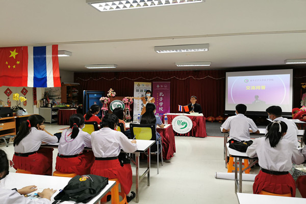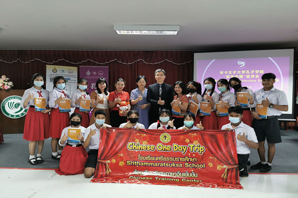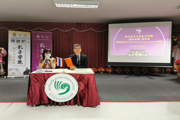 12月16日下午,泰国宋卡王子大学孔子学院举行了“留学中国”洛坤府贪玛叻教育学校(Srithammaratsuksa School)专场线下宣讲会,向该校中文专业高一年级15名同学介绍了“留学中国”的情况,并现场解答了师生们的其他相关问题。孔子学院中方院长孙中会、公派教师刘晓玲、洛坤府贪玛叻教育学校教学主任沃娃科·普莱端(Miss.Woranuch Plaiduang)和中文教师范秀晶参加了此次活动。
