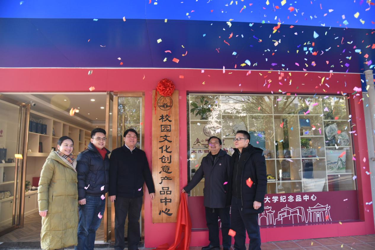 2021年1月12日,我校校园文化创意产品中心(以下简称文创中心)在雁山校区举行揭牌仪式。校党委常委、总会计师李英利出席并为文创中心揭牌。参加揭牌仪式的还有校长办公室相关负责人、校友工作办/基金会管理办全体人员以及校友工作学生志愿者等。揭牌仪式由校友工作办/基金会管理办主任、教育发展基金会理事长主持。