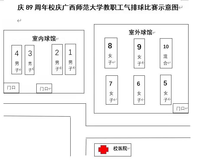 “庆89周年校庆广西师范大学教职工气排球赛”将于11月8日-11月12日、11月23日-11月26日晚上举行,具体安排见附件。为确保比赛正常进行,请各学院(部)、各单位积极配合做好组织工作,并注意以下事项: