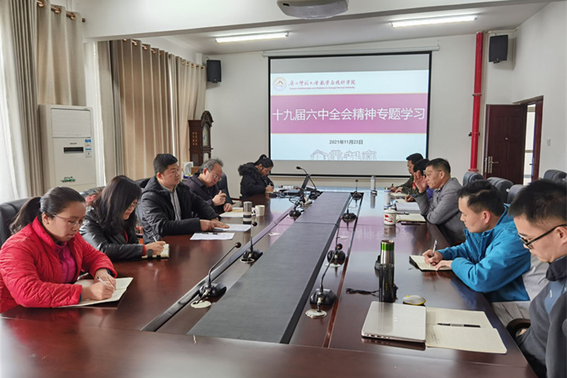连日来,数学与统计学院通过理论学习中心组集中学习、微宣讲、主题党日活动、主题团日活动、其他形式集中学习、媒体阵地宣传等方式深入学习贯彻党的十九届六中全会精神,引导学院师生把思想和行动统一到全会精神上来,凝心聚力推动学院高质量发展,奋力开创学院工作新局面。