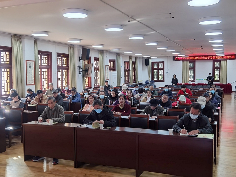 为深入学习贯彻党的十九届六中全会精神,12月2日,在王城校区学术报告厅,离退休党委召开党史学习教育第七期读书班,学习宣传贯彻党的十九届六中全会精神。读书班由离退处主要负责同志主持。离退休党委委员、纪委委员、离退休党支部委员、在职全体人员60余人参加了会议。