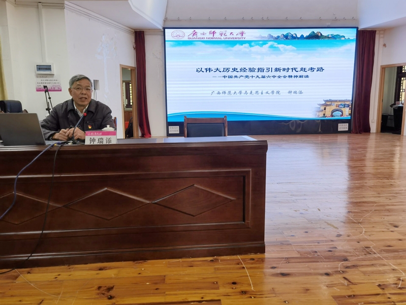 我校原副校长、马克思主义学院钟瑞添教授以“以伟大历史经验指引新时代赶考路”为题,从重大历史关头作出的重要历史决议、中国共产党百年英勇奋斗的历程、新时代的历史性成就和历史性变革、中国共产党百年奋斗的历史意义、中国共产党百年奋斗的历史经验、全面领会“两个确立”深刻涵义和重大意义、以伟大历史经验指引新时代赶考路七个方面对习近平总书记在党的十九届六中全会上的重要讲话和《中共中央关于党的百年奋斗重大成就和历史经验的决议》精神进行了系统阐述和深入解读。此次报告有丰富的史实、鲜活的事例,帮助离退休党员更好地认识到党的十九届六中全会通过的决议是一篇马克思主义的纲领性文献,必将对推动全党统一思想,统一意志,统一行动,团结带领全国各族人民以史为鉴、开创未来,埋头苦干、勇毅前行,为实现第二个百年奋斗目标、实现中华民族伟大复兴产生重大而深远的影响。