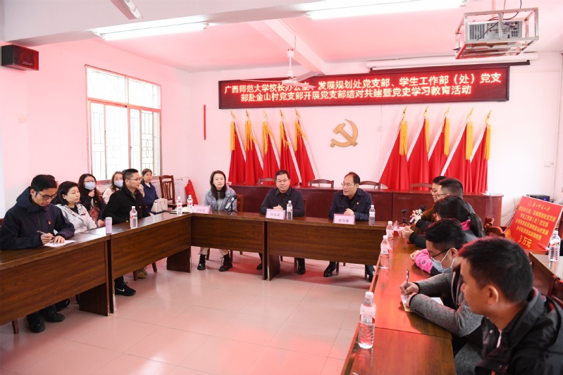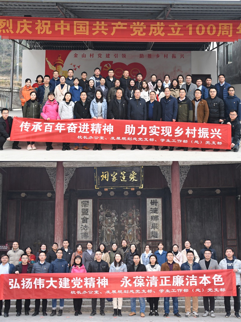 为深入学习贯彻党的十九届六中全会精神,持续推动党史学习教育走深走实,助力乡村振兴,12月15日,校长办公室、发展规划处党支部和学生工作部(处)党支部一行先后赴资源县资源镇金山村、灵川县青狮潭镇江头村开展“传承百年奋进精神 助力实现乡村振兴 ”“弘扬伟大建党精神 永葆清正廉洁本色”主题党日活动。校长贺祖斌以普通党员身份参加。校长办公室、发展规划处党支部和学生工作部(处)党支部全体党员同志参加了此次主题党日活动。