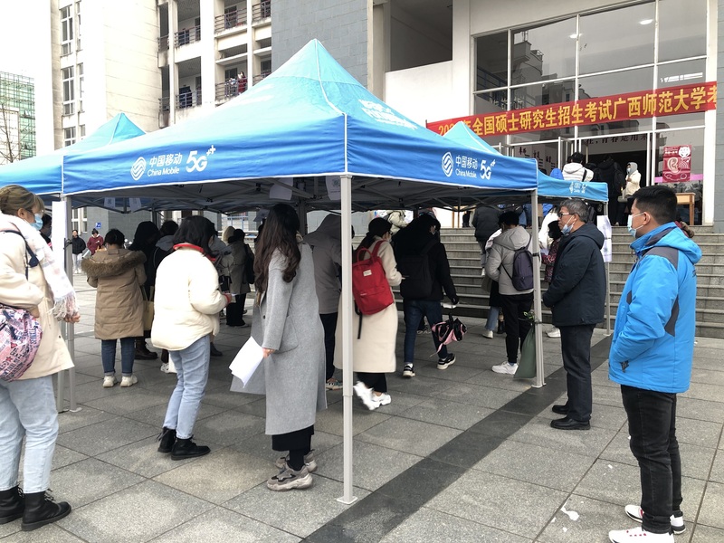 在全国报名人数大幅增长以及疫情防控工作常态化的形势下,校领导高度重视此次研究生招生考试组织工作。校长贺祖斌现场指导考务工作,并带队对考场情况进行巡视检查。校党委常委、副校长孙杰远多次强调要做好考试准备工作,确保万无一失。研工部/研究生院与党办、纪委/监察处、防控办/校办、宣传部、校团委、学工部、教务处、保卫处、后勤保障处/后勤集团、校医院、网络信息中心等多部门,多次协商,制定详细的工作方案和应急预案,稳妥做好考试组织和疫情防控工作。桂林市新冠疫情防控指挥部、卫健委、疾控中心、卫生监督所、七星区卫健委及相关部门考前到我校考点指导疫情防控准备工作。