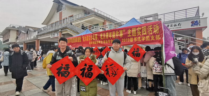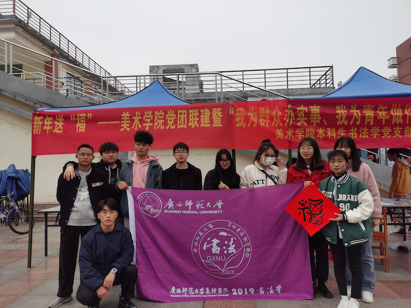 在2022年来临之际,为弘扬优秀传统文化,增强校园欢乐祥和的节日氛围,12月31日,美术学院本科生书法党支部、2019级书法学团支部在雁山校区桃园餐厅门口举办“我为群众办实事、我为青年做件事”主题实践活动。