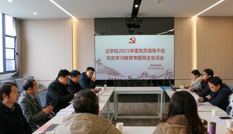 学院党委负责人首先简要传达学校党委关于召开2021年度党员领导干部党史学习教育专题民主生活会的具体要求,通报上一年度民主生活会和有关专题民主生活会整改措施落实情况。他详细介绍民主生活会会前准备情况。会前,法学院领导班子成员通过精心组织学习研讨、广泛征求意见建议、认真开展谈心谈话、深入剖析典型事例、撰写班子对照检查材料和个人发言提纲等环节,踏实认真做好准备工作。