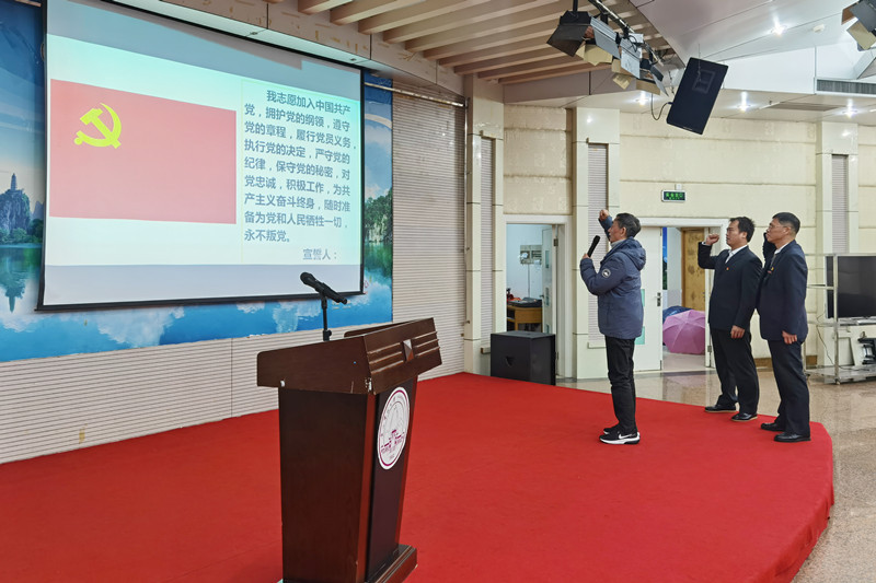 “光荣在党50年”纪念章获得者带领新党员举行入党宣誓