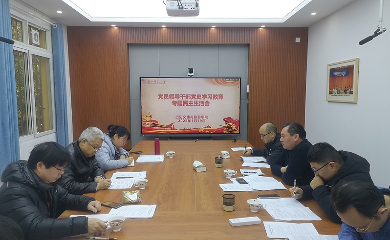 按照自治区党委和学校党委部署安排,1月19日,历史文化与旅游学院党委召开党史学习教育专题民主生活会,深入学习贯彻习近平总书记关于党史学习教育的系列重要论述,以“大力弘扬伟大建党精神,坚持和发展党的百年奋斗历史经验,坚定历史自信,践行时代使命,厚植为民情怀,勇于担当作为,团结带领人民群众走好新的赶考之路”为主题,紧密联系学院党委班子和个人的思想、工作实际,全面对照检查,认真检视剖析,严肃开展批评和自我批评。校党委常委、宣传部长汤志华同志到会指导,学院领导班子全体干部参加会议,学院党委负责人主持会议并讲话。