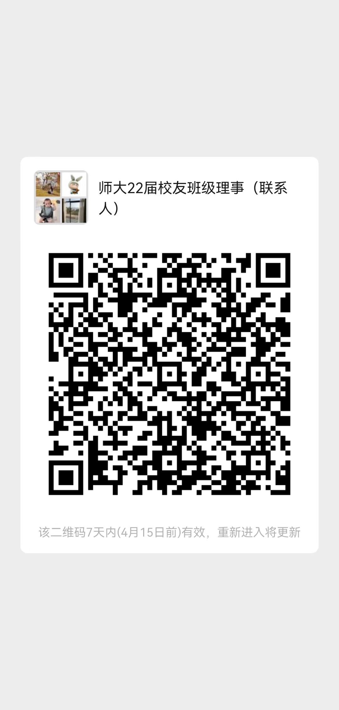 (二)为了加强与毕业生的沟通与联系,请各毕业班辅导员督促所推选的班级理事(联系人)加入2022届校友班级理事(联系人)微信群(群名片见附件2)。