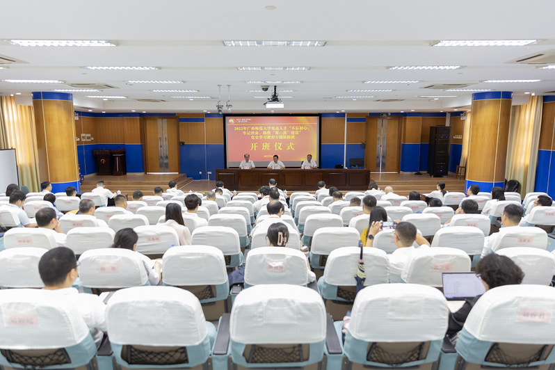 6月14日,我校2022年双高人才“不忘初心,牢记使命,助推‘双一流’建设”党史学习教育专题研修班开班仪式在中共广西区委党校顺利举行。校长贺祖斌出席开班仪式并发表讲话,自治区党委党校副校长、广西行政学院副院长马宁出席开班仪式,来自各学院(部)的近50名双高人才参加此次研修班。会议由校党委副书记赵铁主持。