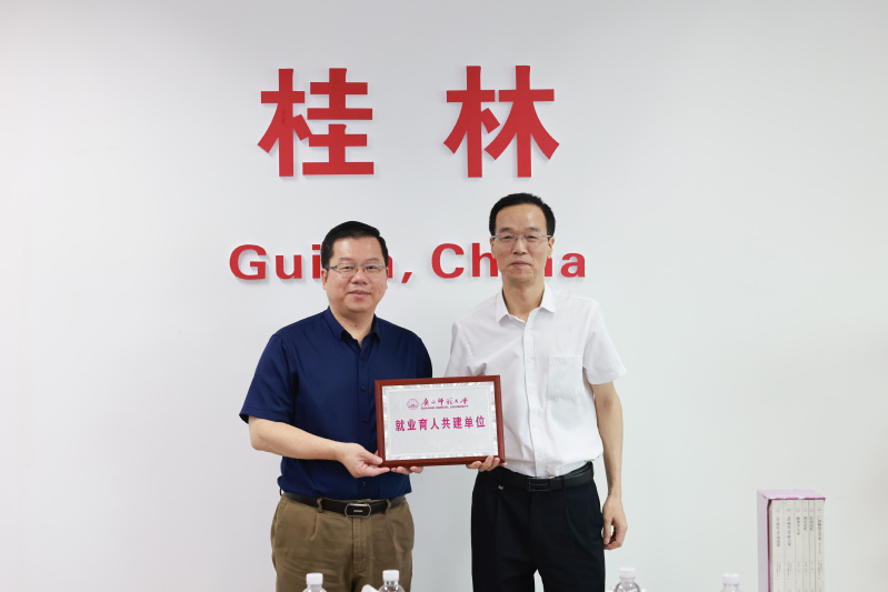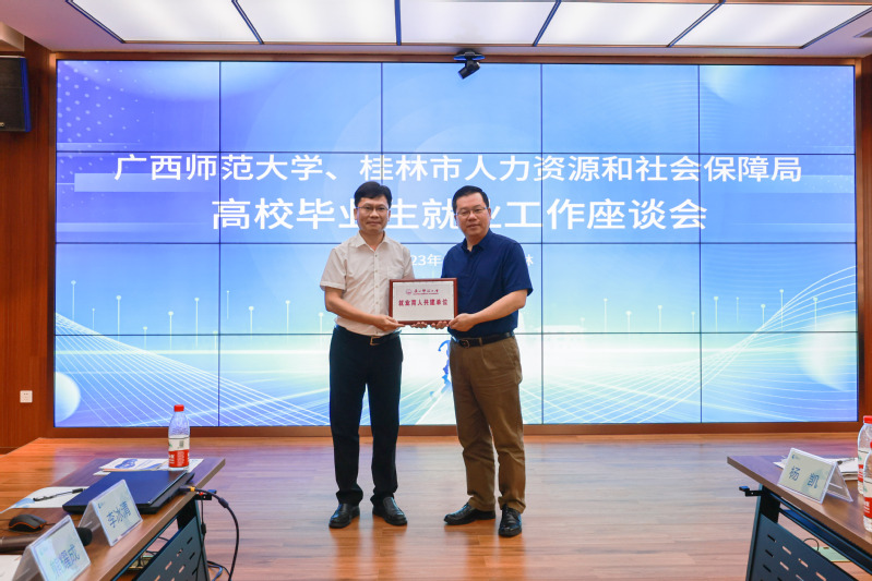 会后,贺祖斌分别为桂林市人才服务中心、桂林市科技局授予“广西师范大学就业育人共建单位”牌匾。