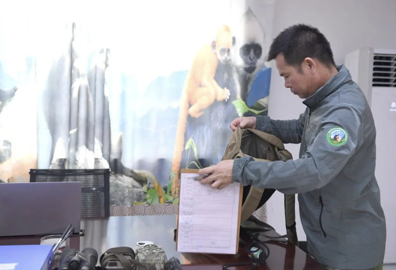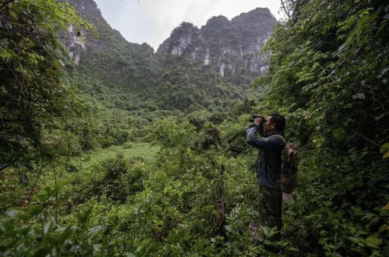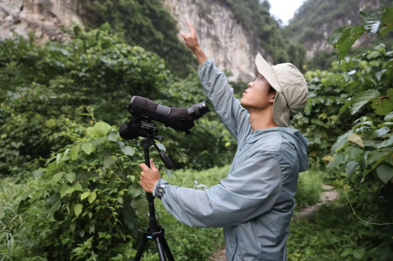 这里是位于广西崇左市罗白乡的白头叶猴国家级自然保护区板利片区的核心区,来自广西师范大学的研究生李文钦已经在这里呆了一年多。