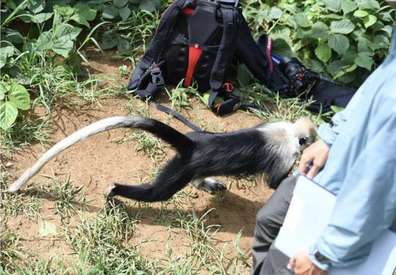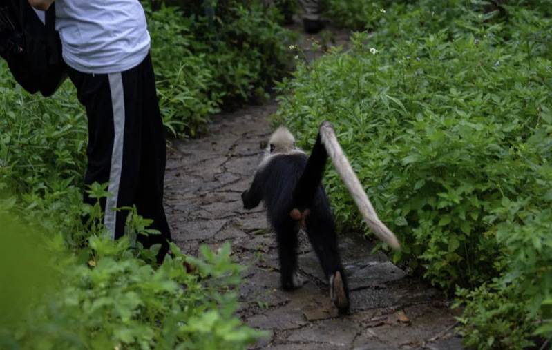 8月5日,一只白头叶猴从李文钦身边跑过。
