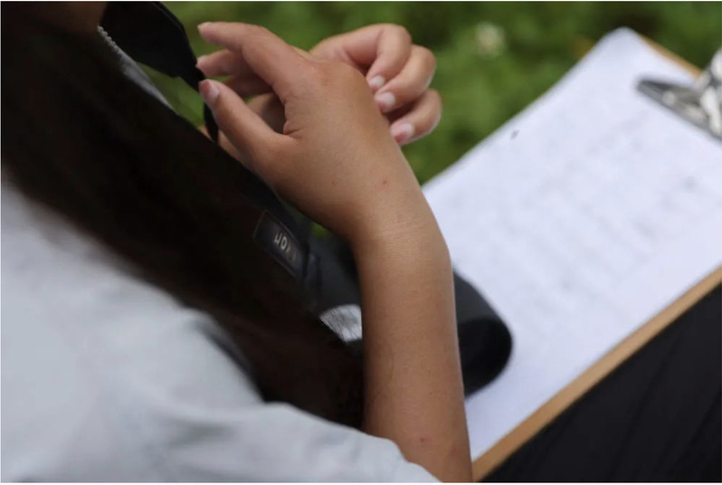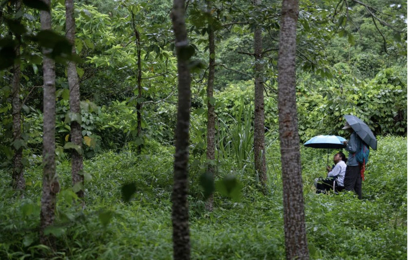 白头叶猴在林中不断移动,寻找着最新鲜的果实和嫩叶,李文钦和刘彦辰紧紧跟随着它们:继续观察,继续记录。刘彦辰一边记录,一边用手掐着手臂上被蚊虫咬出的小包,不一会儿,手臂上全是月牙形的指甲印。夏日的树林中,蚊虫叮咬无法避免,就在采访的两天时间,记者的手臂也被咬出了几十个小包,奇痒难当。而对于研究者和护林员来说,这还不是最让他们难以忍受的。