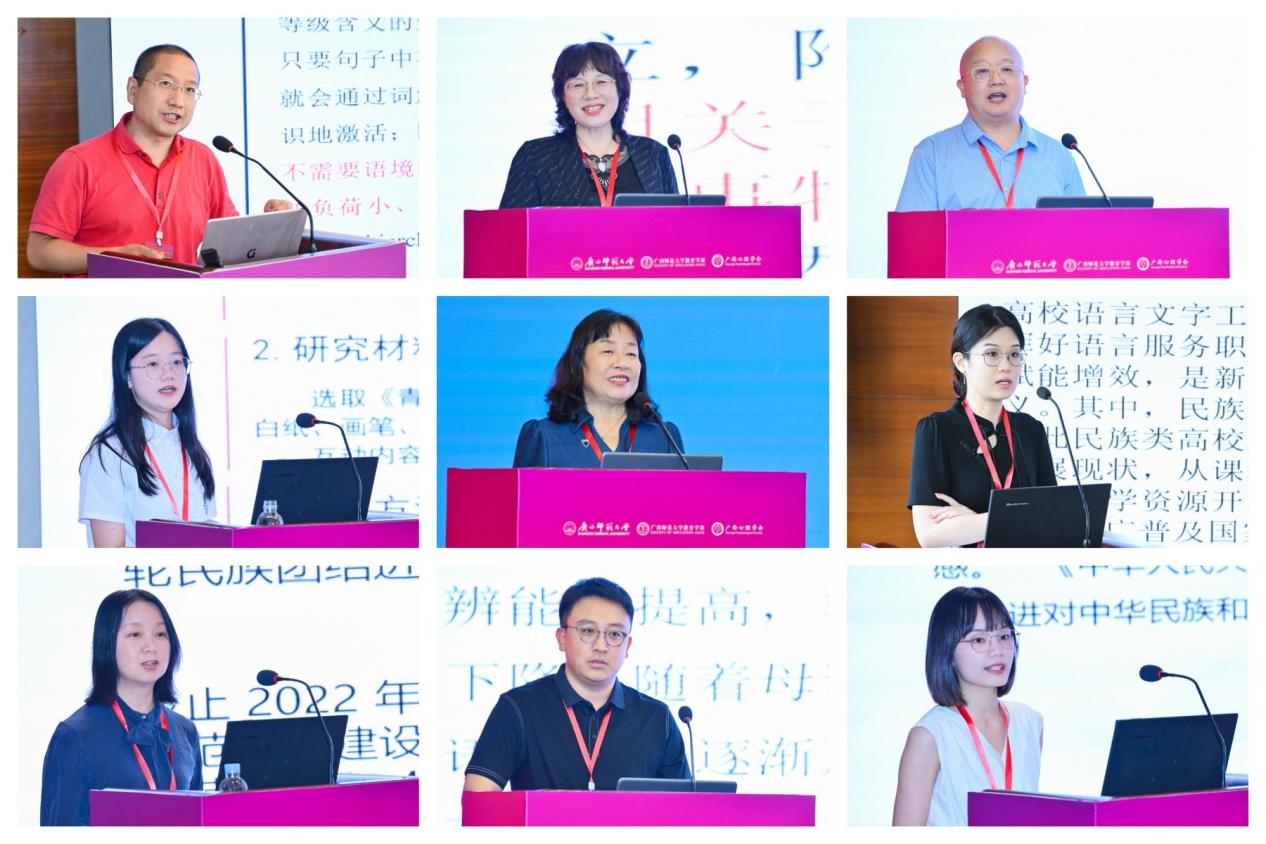北京外国语大学顾曰国教授、南京师范大学李葆嘉教授、广东外语外贸大学胡建华教授、广西壮族自治区民族宗教事务委员会原二级巡视员余飞、广西民族大学徐杰舜教授、北京语言大学王建勤教授、南京师范大学张辉教授、广东外语外贸大学卢植教授、贵州师范大学王洪礼教授先后作了主旨报告。