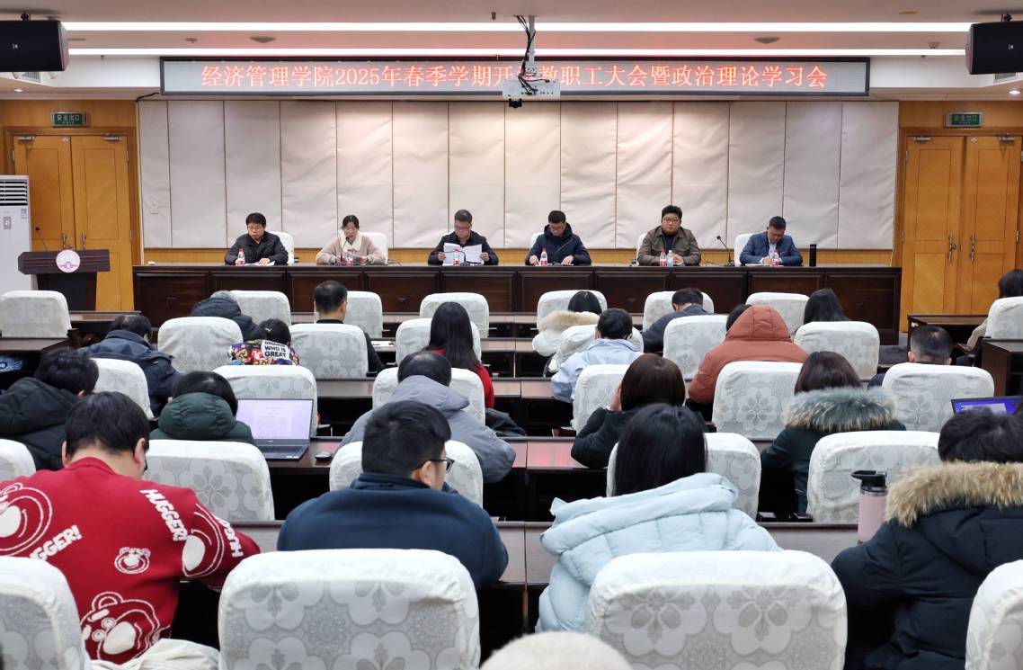 图1:经济管理学院召开2025年春季学期开学教职工大会暨政治理论学习会