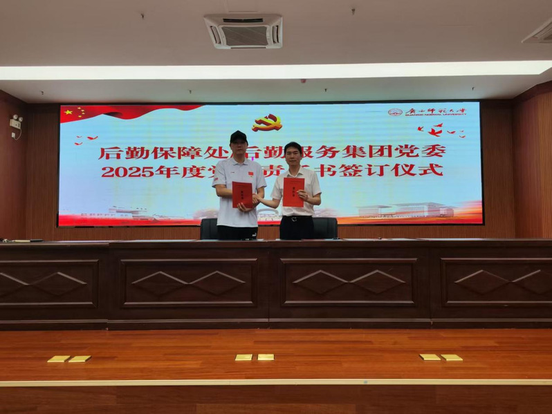 随后,由后勤党委主要负责人与各党支部书记现场签订2025年度党建责任书。由后勤行政主要负责人与各中心、各部门负责人签订了2025年度目标管理责任书。