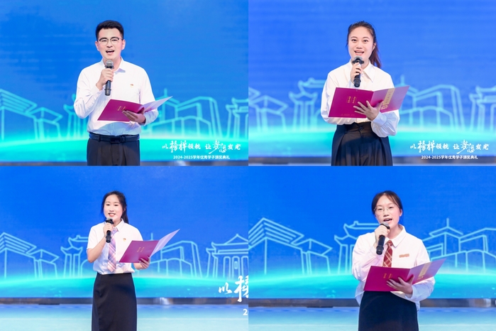 以榜样领航,让梦想发光。为树选我校新时代大学生先进典型,展现我校学子青春风采,营造积极向上、奋勇争先的学风氛围,6月13日下午,我校在雁山校区音乐学院三楼综合厅举行2024-2025学年优秀学子颁奖典礼。校党委副书记、校长孙杰远,校党委常委、副校长汤志华、沈星灿,校友企业代表、社会捐资代表出席颁奖典礼,相关职能部门负责人、各学院(部)学生工作党委副书记、全体专职辅导员、获奖班级集体、先进学子代表及学生观众累计500余人现场参会。典礼同步线上直播,吸引上万人次云端观礼。
