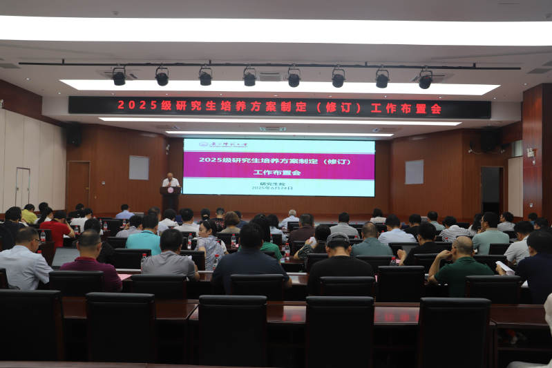为深入贯彻《中华人民共和国学位法》精神,落实新时代研究生教育改革发展要求,进一步提升研究生培养质量,我校于6月24日在育才校区国教中心2号楼201室开展2025级研究生培养方案制定(修订)工作布置会。会议围绕培养方案优化、学科特色强化及人才培养创新展开部署,校党委常委、副校长李先贤,各研究生院培养单位分管领导、学科负责人、培养方案文本执笔人代表、研究生教学秘书及研究生院相关人员等近100人参会,研究生院主要负责人主持会议。
