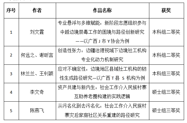 政管学院社会工作专业本科生刘文霞、何远之、谢昕言、林兰兰以及硕士研究生陈燕飞、李文奇、杨雯淑等7名同学携6篇研究成果参会交流,最终荣获二等奖2项、三等奖3项。