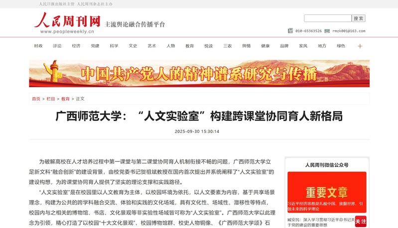 广西师范大学“人文实验室”的探索实践,为新时代高校深化教育教学改革、构建高质量育人体系提供了以文化人切口的新范式。