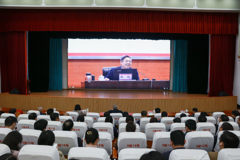 为深入学习领会习近平总书记在党的二十届四中全会上的重要讲话和全会精神,认真学习贯彻党中央决策部署,11月11日,我校在育才校区举办学校领导干部素质报告会,会议邀请了中国人民大学教授、博士生导师秦宣线上作题为《接续推进中国式现代化的行动纲领——党的二十届四中全会精神解读》的专题报告。报告会以线下集中收看的形式进行,校党委副书记黄文韬主持报告会。