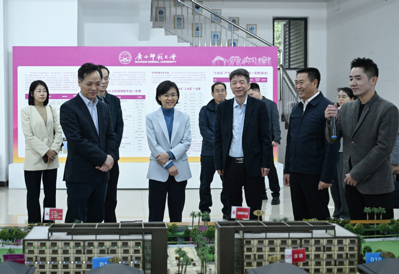 11月12日,自治区科学技术厅党组书记、厅长孙睿君率队莅临广西师范大学科技园,专题调研学校科技创新赋能、科技成果转化及科技园建设工作。桂林市政府副市长孙环志,桂林市科学技术局局长曹方明,桂林市七星区委副书记、区长郭红星,我校党委副书记、校长孙杰远参与调研。