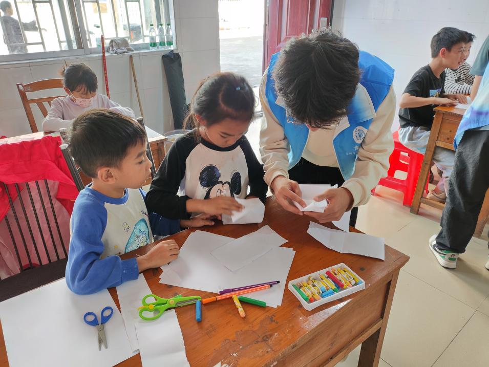 11月15日下午,为丰富乡村儿童课余生活,传播科学知识,物理科学与技术学院蒲公英科技·教育传播团队(以下简称“蒲公英团队”)赴桂林市丫吉村开展“纸青蛙公益课堂”科普活动。村内十余名小朋友参与实践。