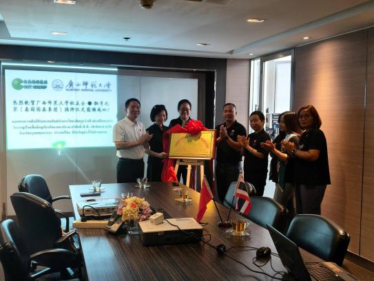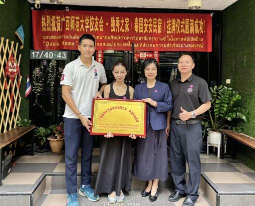 此外,我校在暖武里府校友黄爱云的金荷汉语学校、曼谷校友彭乐的安安民宿和校友黄时任职的泰国国泰旅游集团成立了广西师范大学校友会·独秀之家并揭牌。