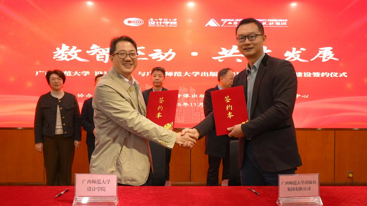 11月18日,正值广西师范大学出版社39周年社庆,“数智驱动・共生发展——广西师范大学教育学部、设计学院与出版社集团数字教材建设合作签约仪式”在出版社集团总部大楼举行,校党委副书记、校长孙杰远出席签约仪式并讲话。
