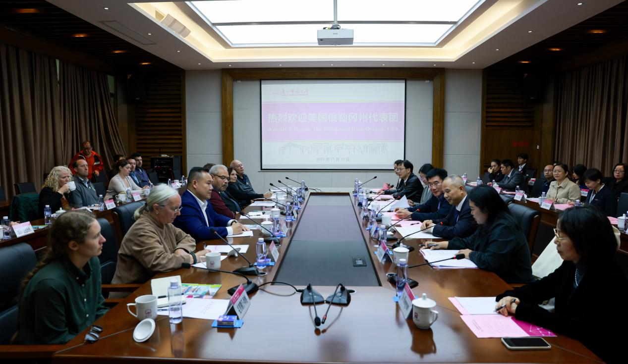 11月11日,以美国俄勒冈州参议员卢.弗雷德里克为团长的美国俄勒冈州代表团一行,到访广西师范大学并举行座谈会,会议由桂林市人大常委会周卉副主任主持。双方围绕多领域合作展开深入交流,为后续的务实合作搭建桥梁。
