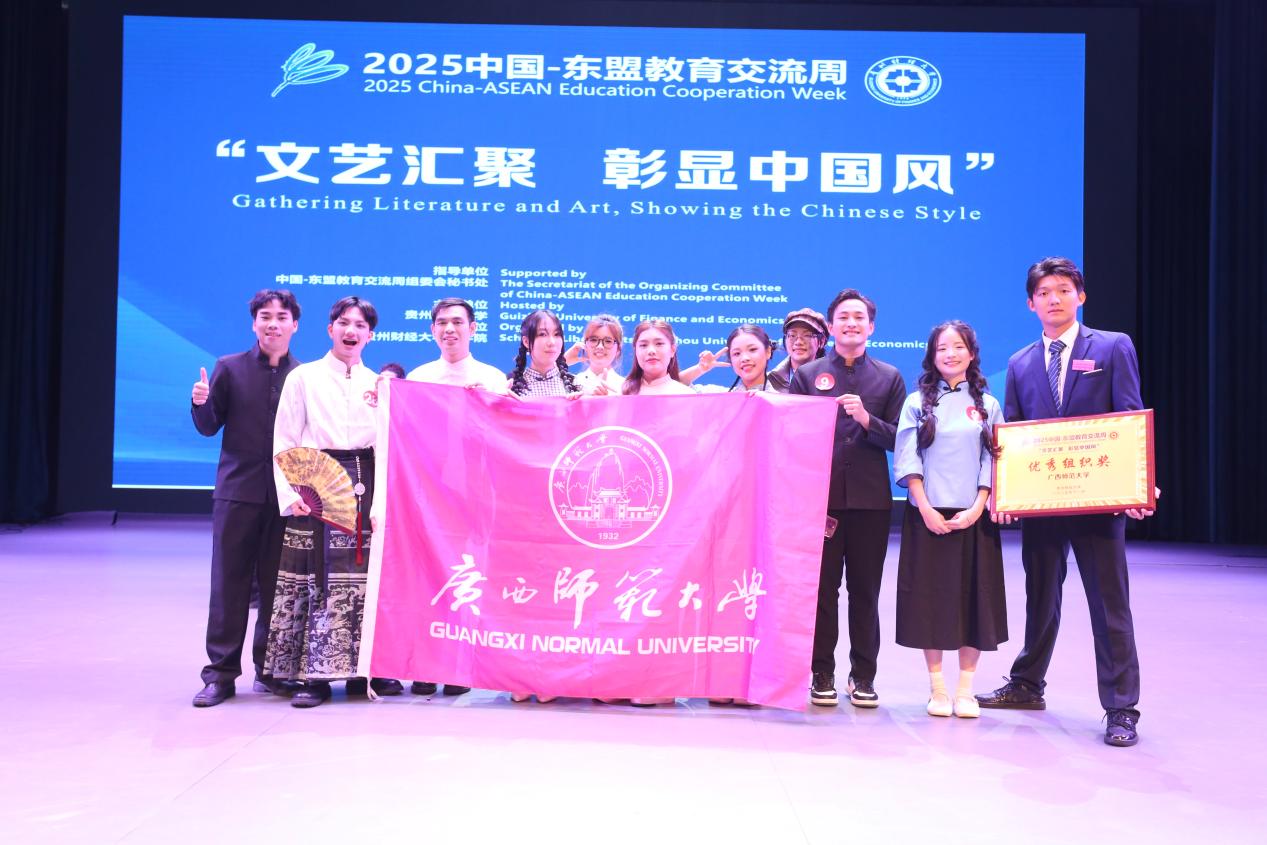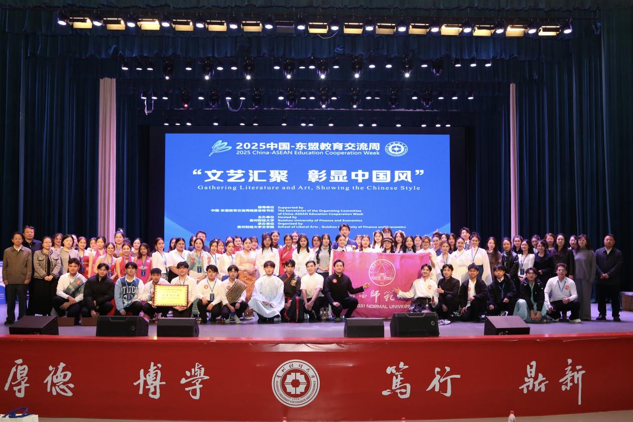2025年11月14-15日,在2025年中国-东盟教育交流周“文艺汇聚,彰显中国风”文艺汇演决赛中,我校国际学生表现出色,共斩获一等奖1项、二等奖1项、三等奖2项及优秀奖5项,学校同时荣获“优秀组织奖”。