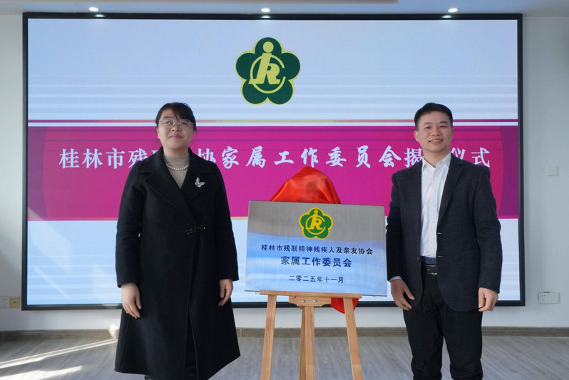 自治区残联精协副主席罗璜莹、广西师范大学政治与公共管理学院党委负责人共同为家属工作委员会揭牌