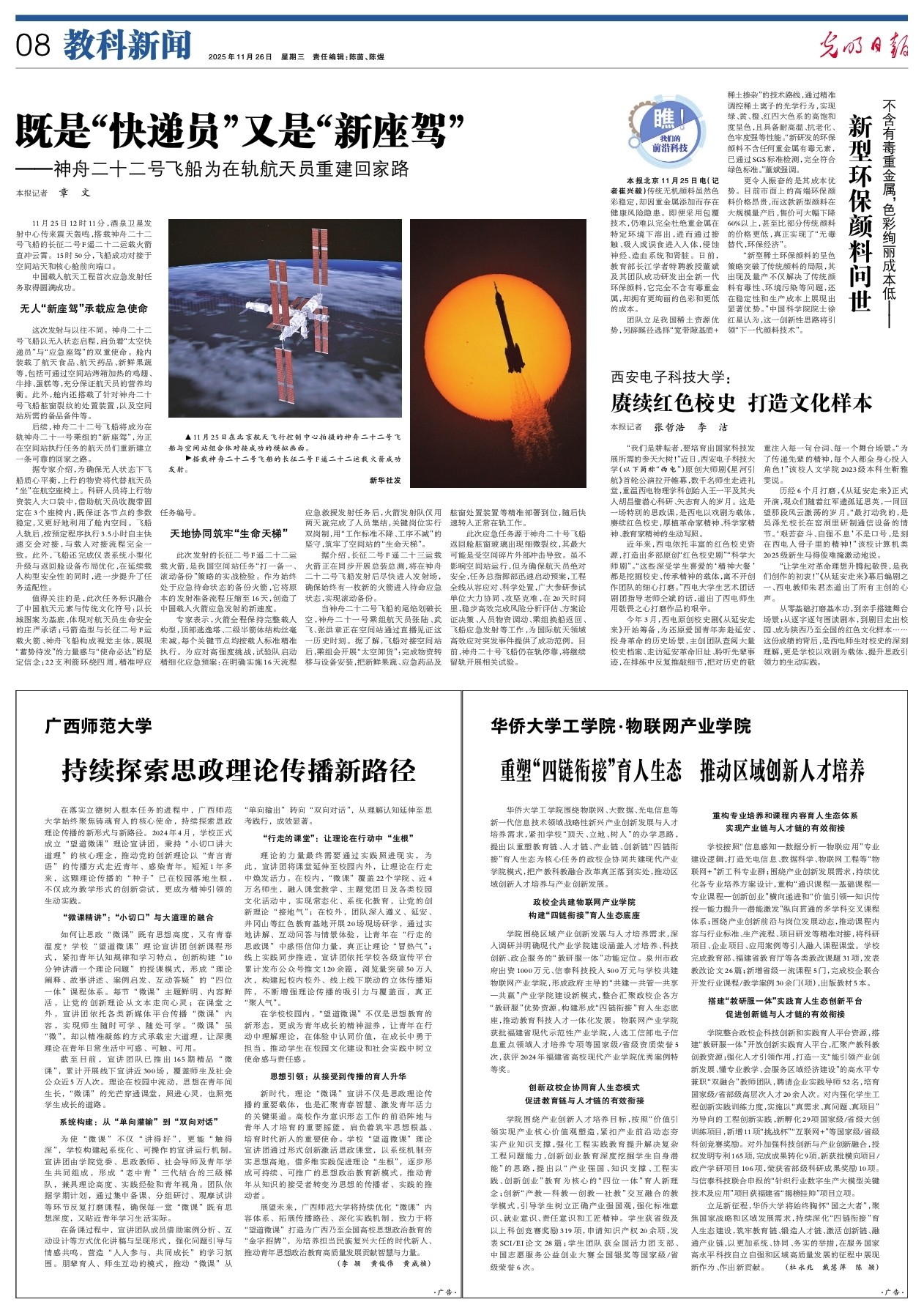 11月26日,【光明日报】关注报道我校聚焦铸魂育人,成立“望道微课”理论宣讲团,持续探索思政理论传播新路径。宣讲团秉持“小切口讲大道理”,创新构建“10分钟微课”与“四位一体”课程体系,以“青言青语”让党的创新理论走近青年。我校系统构建宣讲机制,形成老中青结合的三级梯队,推动教学从“单向灌输”转向“双向对话”。同时,将课堂延伸至校内外,通过线下红色研学、线上新媒体平台构建立体传播矩阵,使理论“接地气、冒热气、聚人气”。目前,“望道微课”已推出165期,覆盖近5万人次,成为思政教育的新形态和青年成长的精神滋养。我校致力于将其打造为思想政治教育的“金字招牌”,为培育时代新人贡献力量。