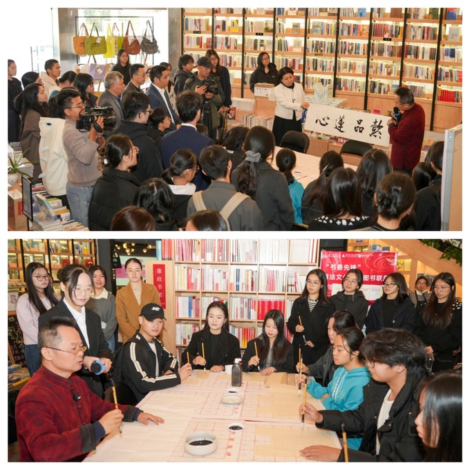 讲座结束后,现场开展廉洁知识互动问答和同沐“廉”风,共书“廉”字活动。陈广林老师现场示范毛笔书法技法,详细讲解执笔姿势与运笔要领。在悠扬的墨香中,师生们纷纷挥毫泼墨,“廉”“洁”“清风”等字样跃然纸上,书房内洋溢着崇廉尚洁的浓厚氛围。