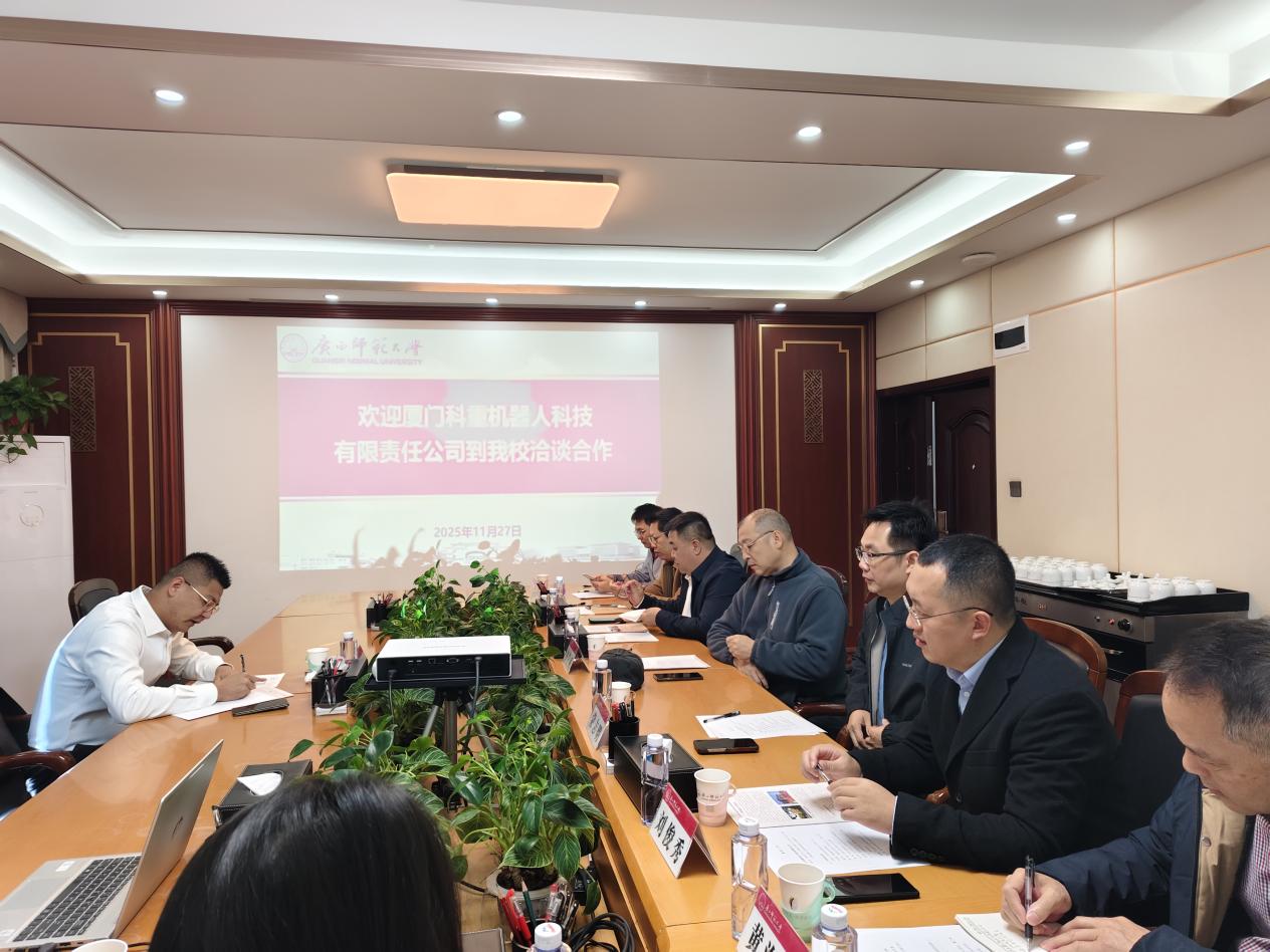 2025年11月27日上午,我校与厦门科重机器人科技有限责任公司在育才校区校办楼三楼会议室举行校企合作洽谈会。会议由科学技术处负责人主持,学校相关单位及学院负责人共同参会。