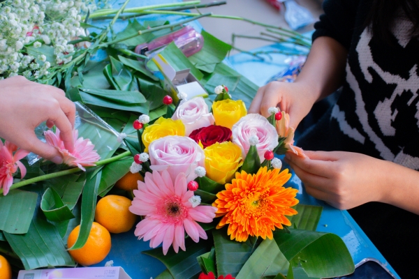 随后的水灯制作环节,中泰学生混合编组,密切合作。泰国留学生主动担任文化使者,耐心讲解水灯的制作工艺与传统习俗,与中国同学一同动手,将彩纸、鲜花、蜡烛等材料变为一个个独具特色的精美水灯。这一过程不仅锻炼了学生的动手与协作能力,更在互动中增进了文化理解与情感共鸣。
