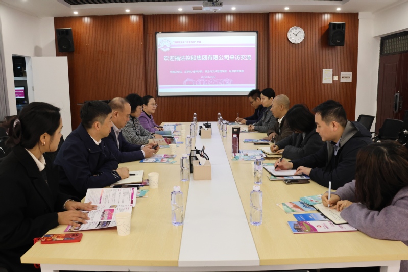 为深化校企合作交流,提高人才培养质量,外国语学院联合法学院/律师学院、政治与公共管理学院、经济管理学院,与福达控股集团有限公司共同举办了校企合作交流座谈会。福达集团党委副书记、副总经理黄桂霞、副总经理蒋灵丽及相关部门负责人,外国语学院党委书记、相关学院负责人出席会议。