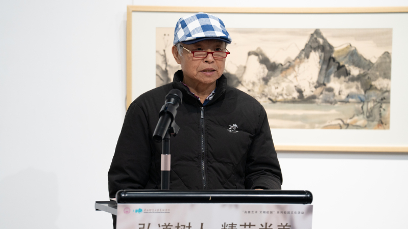 美术学院行政主要负责人在致辞中表示,自伍纯道、尹一鹏等名家大师播撒美育火种以来,学院历经三十七载积淀,已成长为八桂大地美术教育与创作人才培育的核心阵地,始终坚守“弘道树人 精艺尚美”的院训精神内核。学院将深度融入学校“1248”总体发展战略,持续构建“思创引领、专创融合”育人体系,希望全院师生以老一辈艺术家为标杆,锤炼专业技艺、涵养德艺修为。