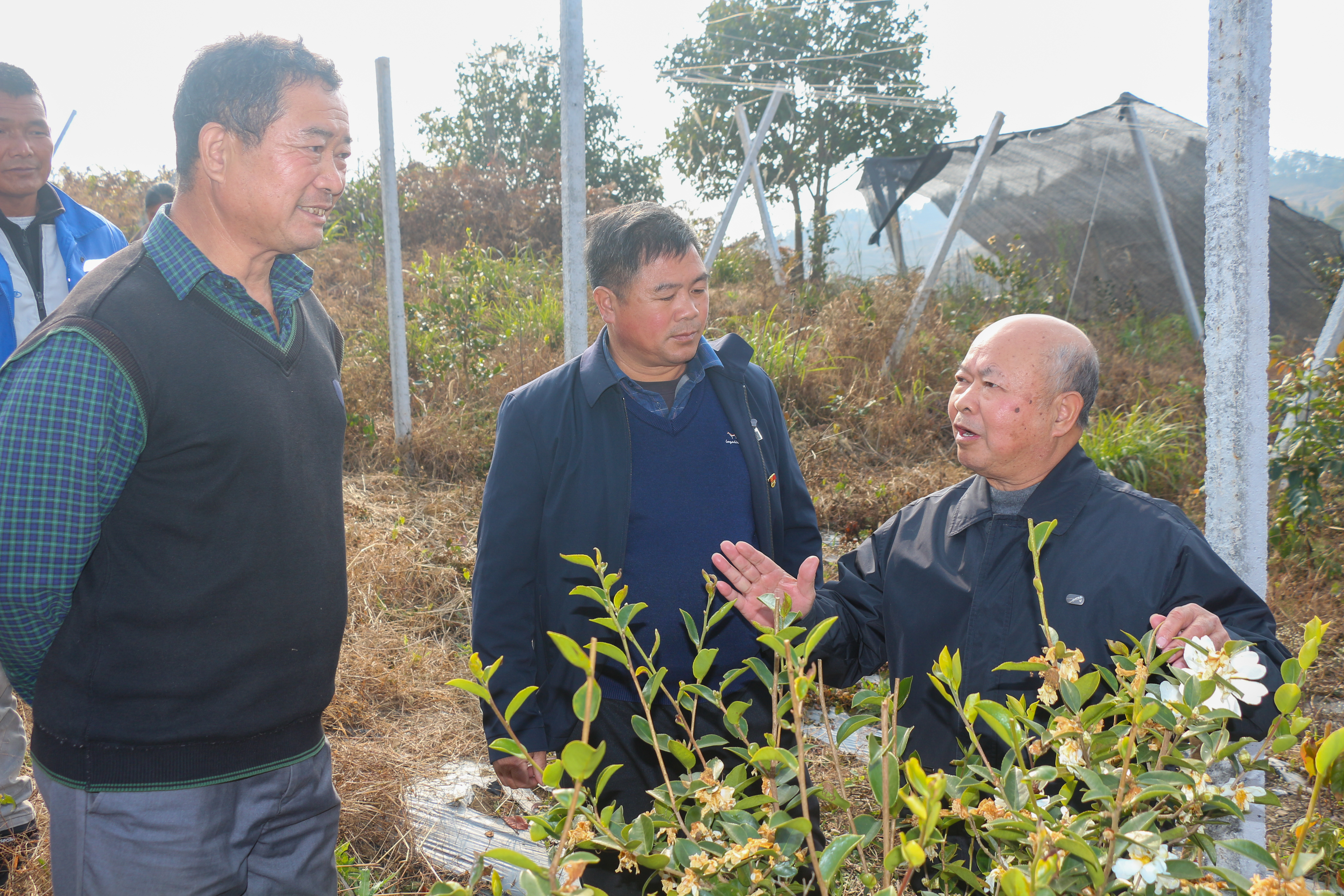 “油茶种植要因地制宜,施肥要看土壤‘脸色’,病虫害防治得用‘土法子’结合新技术!”在农户油茶种植基地,第十批全国岗位学雷锋标兵邓荫伟教授带领科技特派员团队,化身“田间导师”,为农户带来一场“接地气”的田间课堂。团队采用“现场教学+实操演练+互动答疑”模式,手把手传授油茶修剪、嫁接、防病、施肥等实用技术,并结合当地海拔和土壤特性提出优化建议。