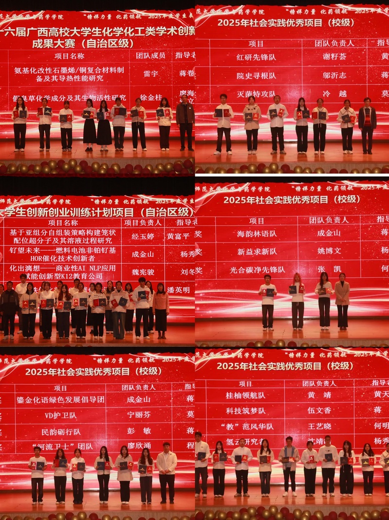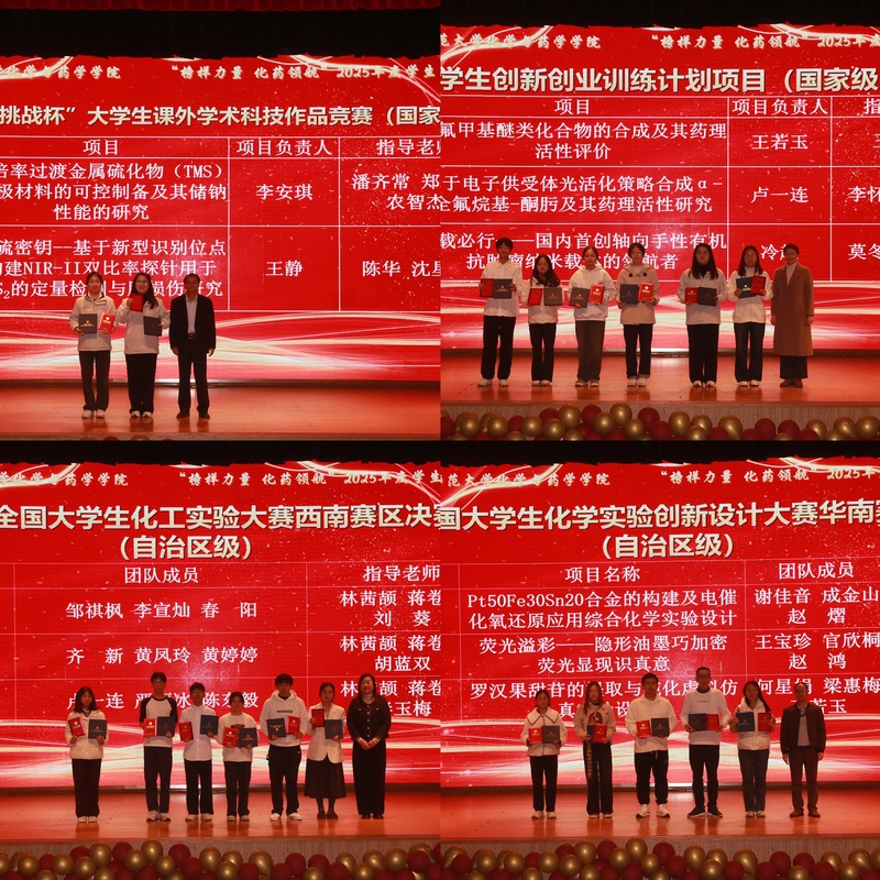 晚会在青春舞曲中落下帷幕。此次表彰既是化学与药学学院“三全育人”改革成效的生动体现,也进一步营造了榜样引领、踔厉奋发的良好氛围。下一步,化学与药学学院将持续秉承“尊师重道 敬业乐群”校训精神,落实立德树人根本任务,深化教育教学改革,加强科研创新平台建设,服务广西地方发展需求,着力培养更多兼具创新精神与实践能力的高素质人才。