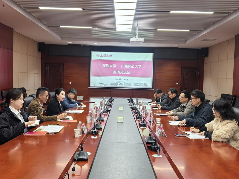 12月5日上午,深圳大学丽湖校区管理办公室一行5人来到我校雁山校区,围绕后勤物业管理、校园文化建设、桂学博物馆运营等工作开展座谈交流。我校图书馆党总支书记、后勤分管物业工作的副处长及后勤相关部门人员参加交流座谈。