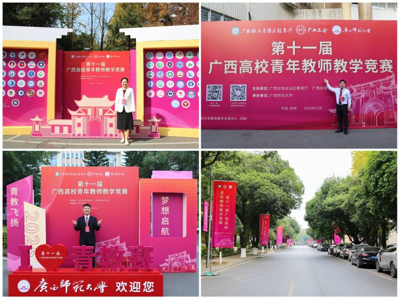 2025年12月5日至7日,由自治区教育厅、自治区总工会主办,广西师范大学承办的第十一届全区高校青年教师教学竞赛决赛在该校育才校区举办。自治区总工会教育工会主席韦孟奇、广西师范大学副校长黄晓娟现场指导竞赛组织与保障工作;广西师范大学教务处/教师教学发展中心和工会部门负责竞赛活动具体组织工作。本次决赛汇聚全区58所高校的137名青年教师同台竞技,特邀35位区外专家组成评审团队,其中包括教学经验丰富的国家级教学名师、具备全国及省级高校青年教师教学竞赛评审资历的资深教授,以及全国高校青年教师教学竞赛一等奖获得者。