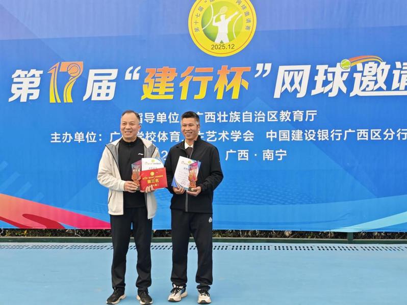 12月5至6日,第十七届“建行杯”银校网球邀请赛在南宁市广西体育中心网球场举办。本次比赛由广西壮族自治区教育厅指导,广西学校体育卫生艺术学会和中国建设银行广西分行主办,设团体组和个人组两个组别,共邀请全区23所网球运动开展较好、技术水平突出的高校和企业参赛,参赛选手近500名。经过两天七场比赛的激烈角逐,原校党委常委、副书记旷永青荣获个人组季军。