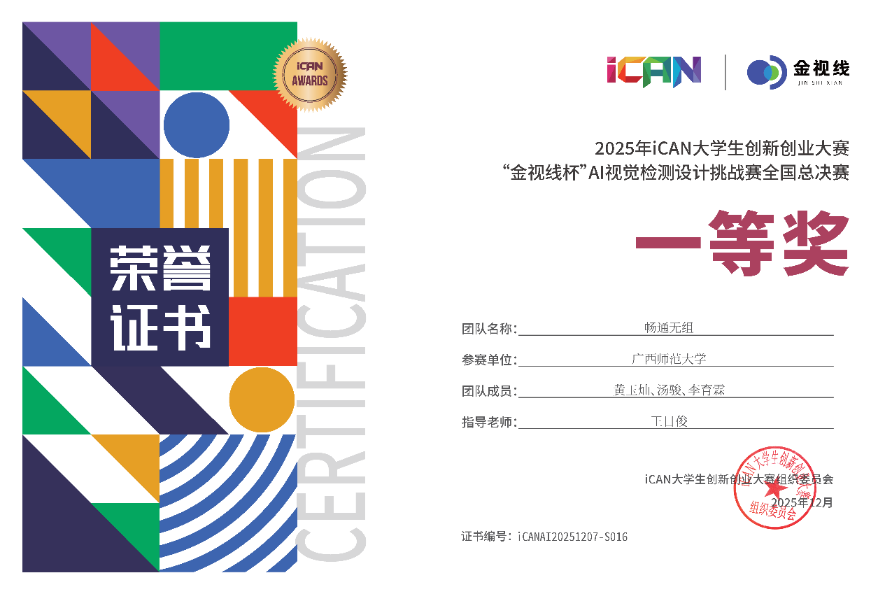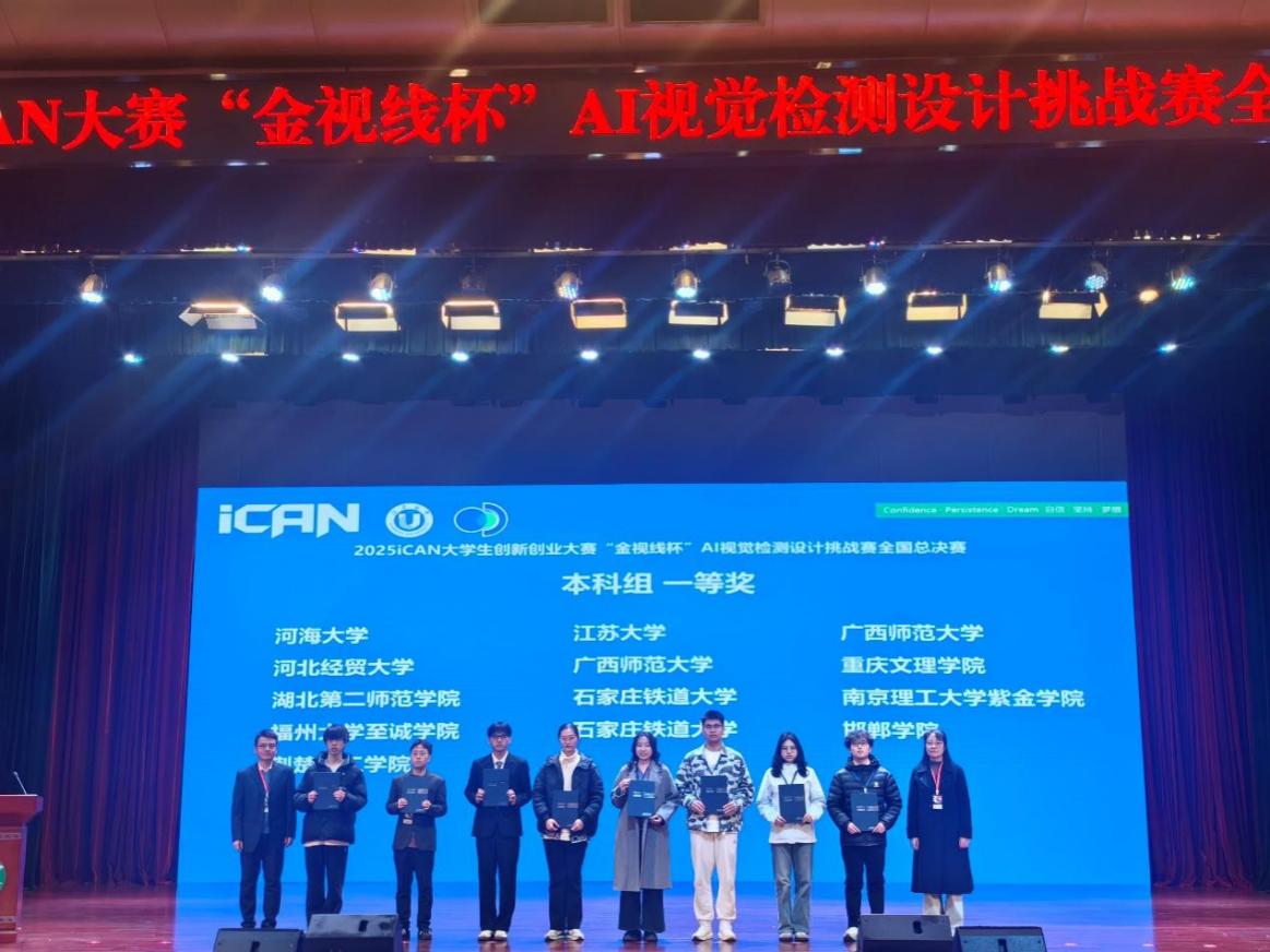 iCAN大赛作为国内双创领域权威赛事,以“创新、创业、创未来”为理念,入选全国高校竞赛排行榜,是衡量高校人才培养成果的关键平台。本届“金视线杯”专项赛聚焦AI视觉检测产业应用,吸引了全国众多高校师生积极参与。我校两支队伍历经校赛、省赛层层选拔,成功晋级全国总决赛。总决赛分线上、线下两阶段,线上赛筛选出三等奖后,149支队伍进入线下角逐一二等奖。