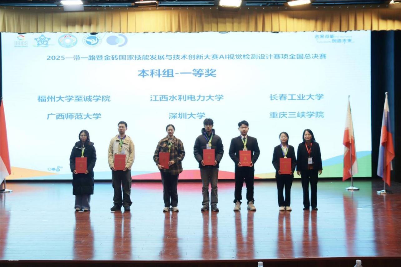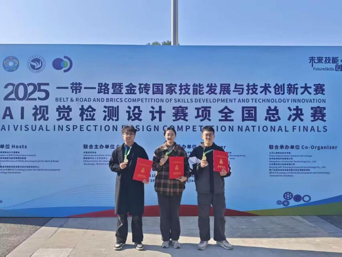 近日,2025年第九届“一带一路”暨金砖国家技能发展与技术创新大赛AI视觉检测设计赛项全国总决赛在浙江省义乌工商职业技术学院结束。我校职业技术师范学院参赛团队(孙璐、任旭莲、蒋明会)在机械工程系王日俊老师的悉心指导下,凭借扎实的专业知识和卓越的实践能力,从全国214所院校的1749名选手中脱颖而出,斩获本科组全国一等奖。