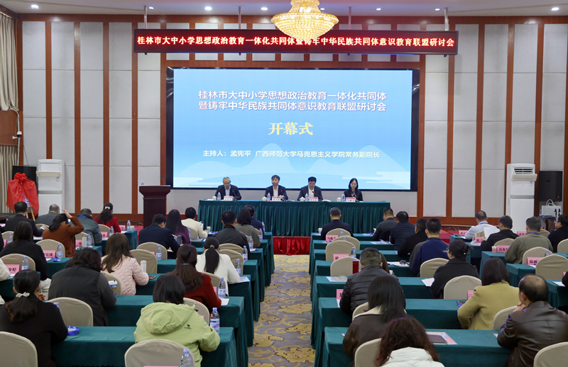 为了深入贯彻落实习近平总书记关于教育的重要论述,特别是关于大中小学思想政治教育一体化建设、铸牢中华民族共同体意识的重要指示精神,切实将铸牢中华民族共同体意识融入立德树人全过程,12月20日,由广西师范大学、桂林市教育局、桂林师范学院牵头组织的2025年全区大中小学思想政治教育一体化共同体暨铸牢中华民族共同体意识教育联盟(桂林片区)成立启动活动在桂林举行。广西师范大学党委副书记黄文韬,桂林市委教育工委委员、市教育局党组成员刘小松,以及桂林片区联盟成员单位的领导、教师代表等近百人出席活动。