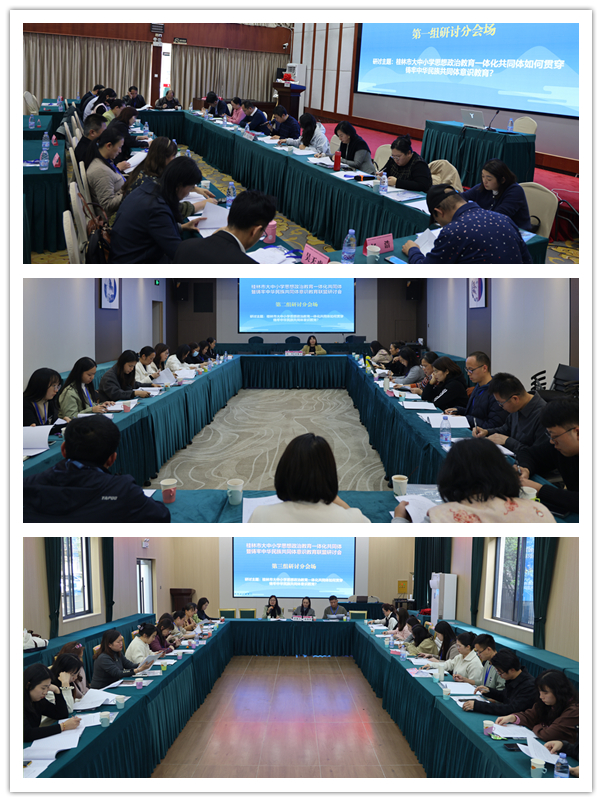 当天,还举行了大中小学思想政治教育一体化共同体和铸牢中华民族共同体意识教育研讨会。来自大连理工大学、北京工商大学、嘉兴大学、广西师范大学、广西民族大学、桂林旅游学院、桂林理工大学、南宁职业技术大学等高校专家学者,以及深圳中学、桂林市第十九中学、龙胜县龙胜镇第二小学、桂林市前锋幼儿园等一线中小学教师围绕不同学段推进铸牢中华民族共同体意识教育的策略与方法、建立大中小学思政课一体化长效机制等专题展开深入交流,并围绕“桂林市大中小学思想政治教育一体化如何贯穿铸牢中华民族共同体意识教育”这一主题进行了集中研讨。