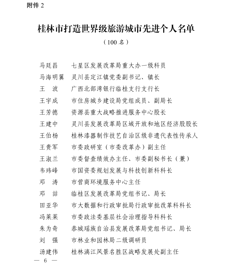 为深入贯彻落实习近平总书记关于广西工作论述的重要要求和对桂林的重要指示精神,表彰先进、树立典型,激发全市上下投身世界级旅游城市建设的积极性和主动性,近日,中共桂林市委员会、桂林市人民政府联合印发《关于表彰桂林市打造世界级旅游城市先进集体和先进个人的决定》。